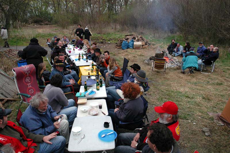 am gelände zwischen lagerfeuer und versorgungszelt der längste tafeltisch